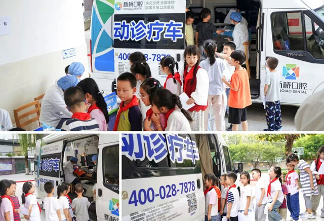 此次校园口腔科体检首站于9月25日落地西南财经大学附属小学,在为期两天的体检工作中,新桥口腔医护团队借助功能完备的移动诊疗车入校服务,对在校1200余名学生进行细致检查,内容涵盖:龋齿排查、牙周健康评估、替牙期乳恒牙更替情况观察,以及牙齿形态、排列和咬合关系的初步判断。医护人员还会对吮指、口呼吸等可能影响颌面发育的不良习惯予以关注。所有检查数据实时记录,汇总后将如实反馈给学校与家长,为后续防治提供科学依据。
