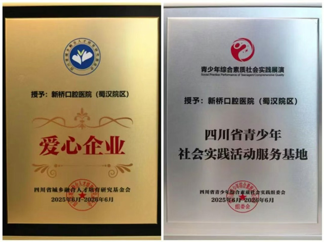 携手赋能育未来!新桥口腔获“四川省青少年社会实践活动服务基地”“爱心企业”双称号