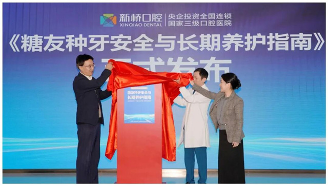 针对高血压、糖尿病等慢病人群长期面临种牙门槛高、风险大的困境,新桥口腔深耕临床多年,构建起覆盖“术前精准评估、术中多学科护航、术后长期追踪”的全周期慢病患者种植管控体系,并于2025年底正式发布区域内首部《糖友种牙安全与长期养护指南》,打破慢病人群种牙壁垒,推动慢病人群口腔健康管理迈入标准化、规范化新阶段。